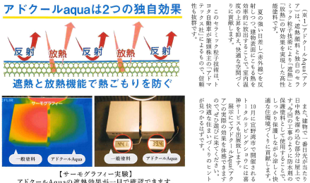 塗り替え工事に使用した塗料は、遮熱性と放熱性を兼ね備えた「アドクールAqua(アクア)」です。