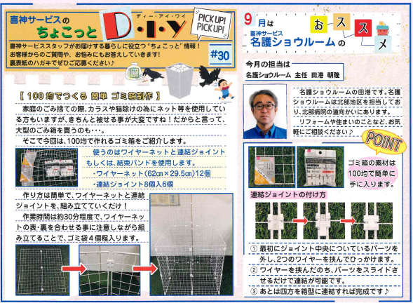 今月のDIYコーナーは「100均でつくる 簡単 ゴミ箱制作」です。