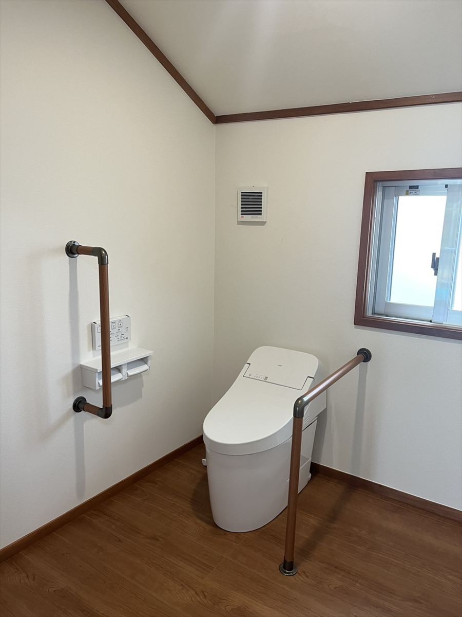 浴室もトイレもバリアフリー、将来安心して生活できるようトイレには手すりを設置しています