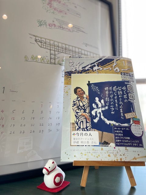 新年最初の表紙を飾って頂いたのは、筆文字アーティストの「伊禮明日香」さんです。