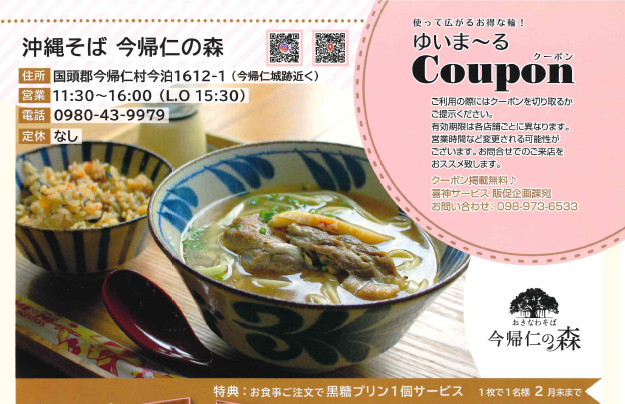 1月号のクーポンページでは「沖縄そば」をご紹介♪ こちらのクーポンは黒糖プリン1個サービスです。
