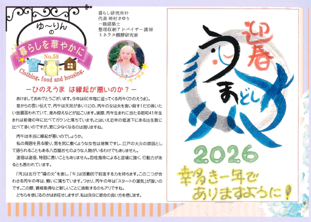 今年は60年に1度の丙午の年。 同じテーマで記事を掲載頂いてますが、いろんな視点から丙午について書いていただいてます。